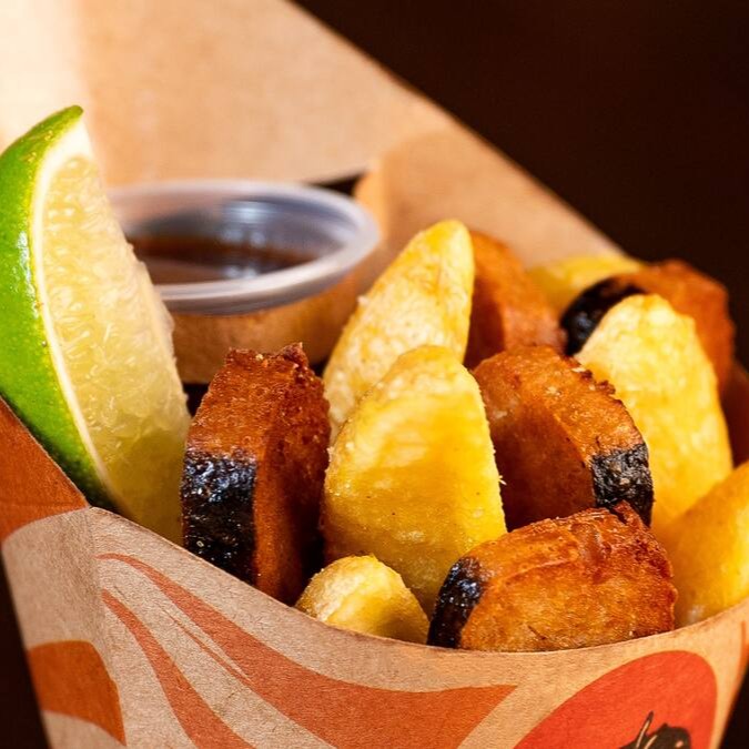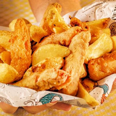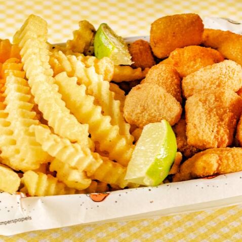 A versão crocante do Fish & Chips. Crocantes iscas de peixe branco, empanadas em farinha Panko de qualidade, acompanhadas de batatas crinkle e quatro molhos à sua escolha. É a pedida perfeita pra quem não abre mão do sabor e da crocância. Não vacila, pede agora e aproveita essa delícia! (500g*)