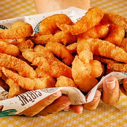 Deliciosos camarões empanados na farinha Panko, acompanhados de batatas crinkle e um molho da sua escolha. (300g*)