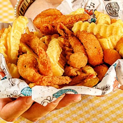 Combinado com tiras de peixe branco empanadas na Panko, camarões, anéis de lula e batatas crinkle, acompanha maionese defumada. (1kg*)