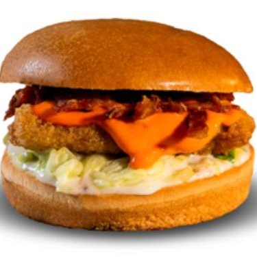 Quem disse que peixe não combina com cheddar e bacon? Filé de peixe branco empanado na Panko, alface americana fatiada com mostarda e mel, bacon em cubos, cheddar cremoso e baconnese da casa, em um macio pão brioche.