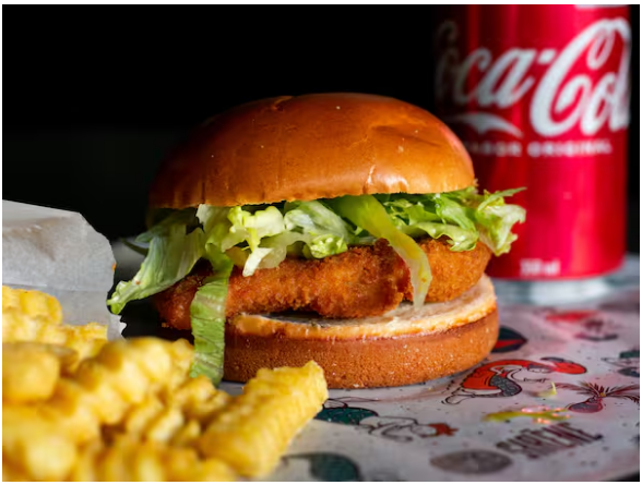 Combo 1: Burguer American Fish + Só Chips 100g + Coca Lata