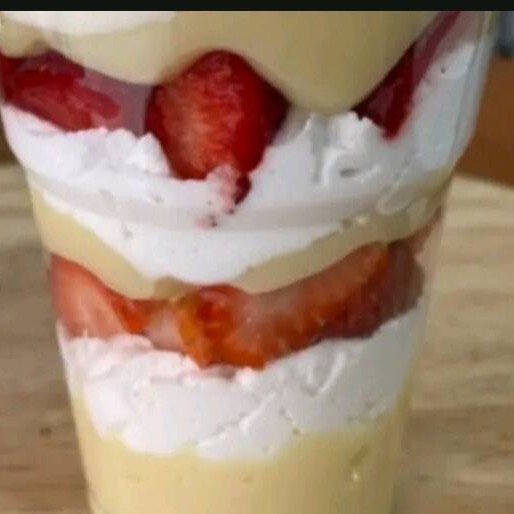 Creme 4 leites, chantilly e morangos picados