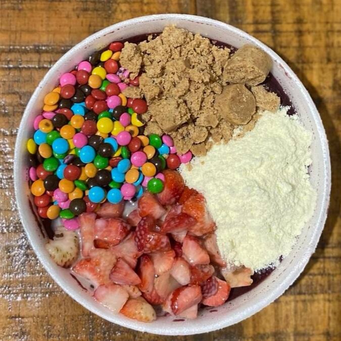 Metade açaí _ metade cupuaçu. Escolha até 4 adicionais grátis e monte o copo de sua preferência