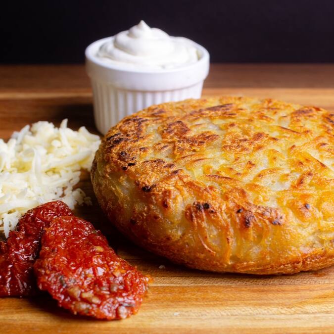 Deliciosa batata suiça com recheio de queijo mussarela e um toque de orégano.