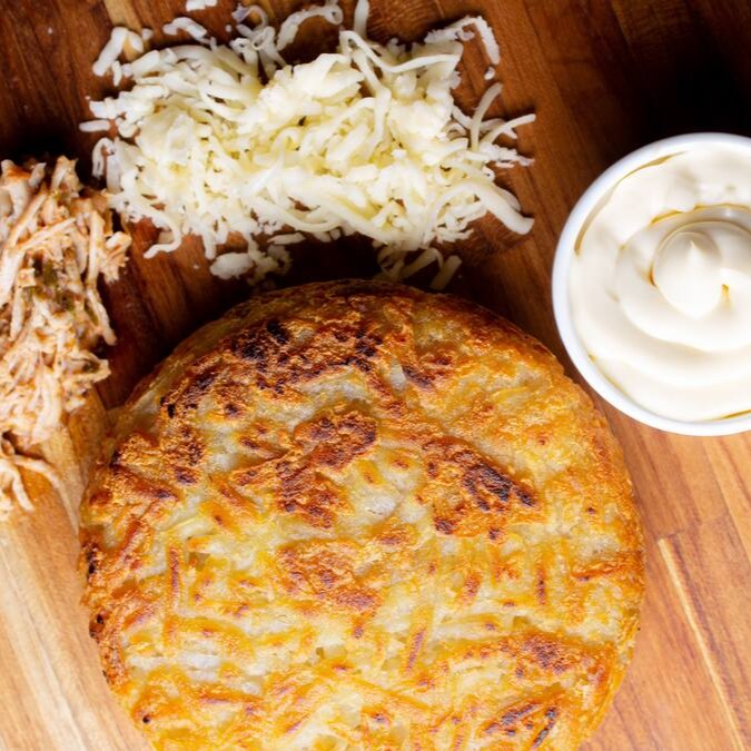Deliciosa batata recheada com frango desfiado, mussarelam requeijão sem amido e orégano.