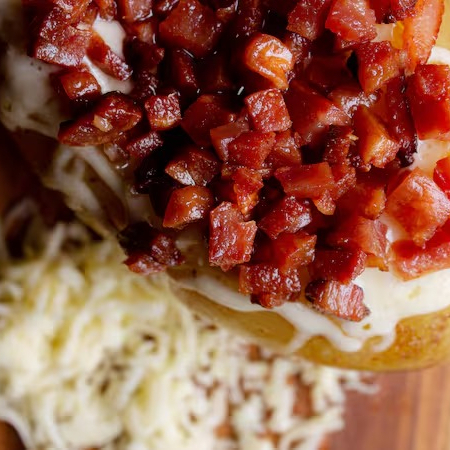 Batata Recheada Bacon + Cheddar