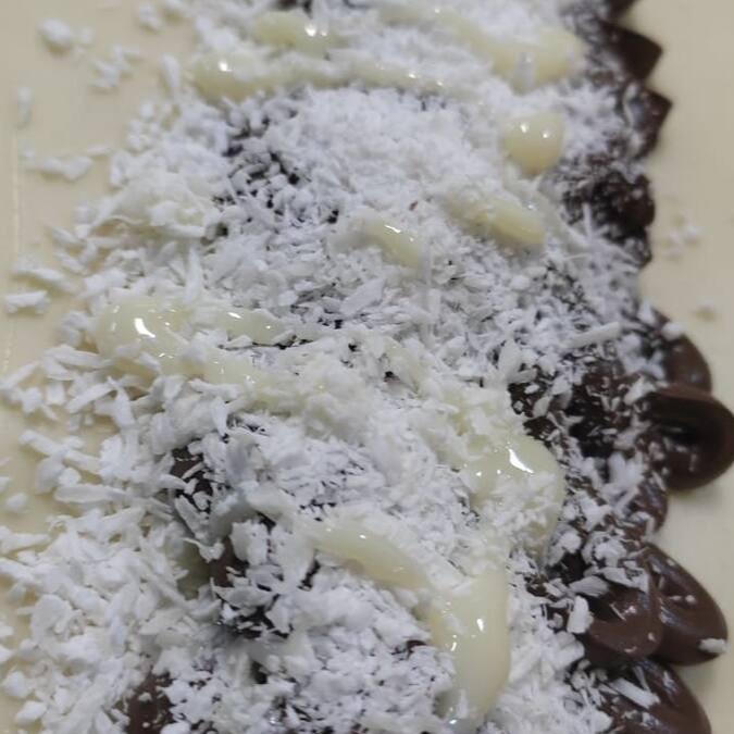 Delicie-se com nosso sofisticado pastel doce 'Chocolate Branco com Uvas e Coco'. Este prato traz a suavidade do chocolate branco cremoso, combinado com uvas frescas e suculentas, que adicionam um toque agridoce irresistível. Para completar, desfrute da textura crocante e do sabor tropical do coco ralado, distribuído generosamente por cima. Uma mistura de sabores que resulta em uma sobremesa única e inesquecível. Ideal para quem busca uma opção doce e requintada em nosso cardápio de pastéis.