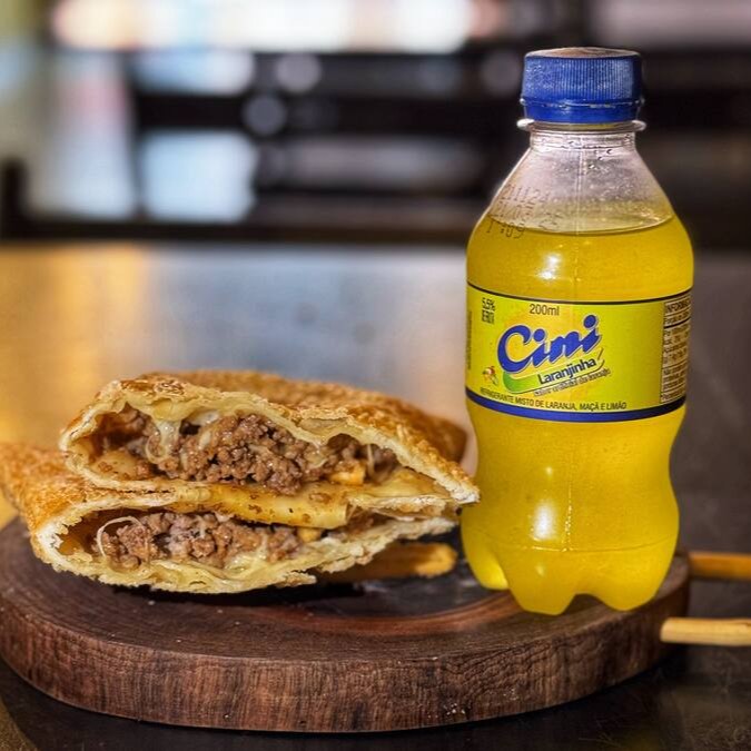 Pastel De Carne E Queijo + Cini 200 Ml Gratis