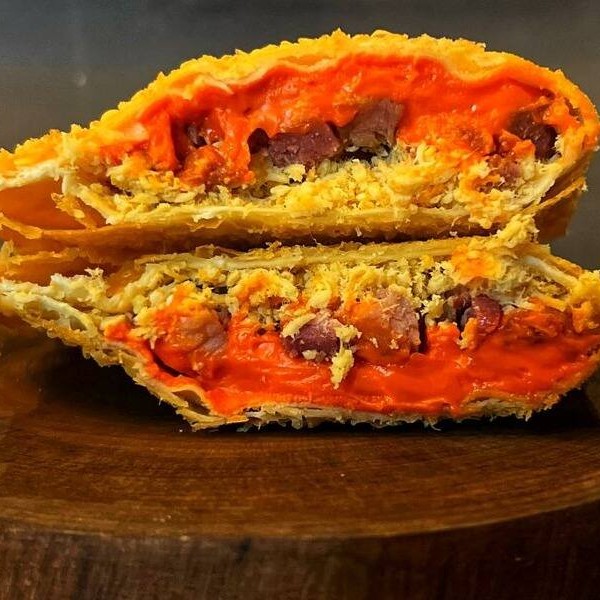 Descubra o sabor irresistível do nosso pastel de carne com ovo cozido. Recheado com carne suculenta e pedaços de ovo cozido, cada pastel oferece uma combinação deliciosa de sabores e texturas. A crocância da massa externa complementa perfeitamente o recheio saboroso e nutritivo, criando um lanche que é ao mesmo tempo satisfatório e reconfortante.