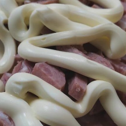 Queijo, presunto, milho e uma pitada de orégano.