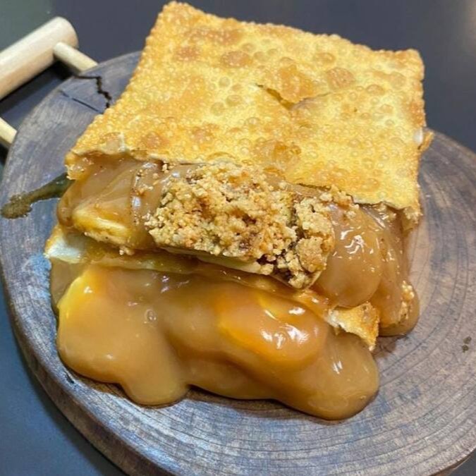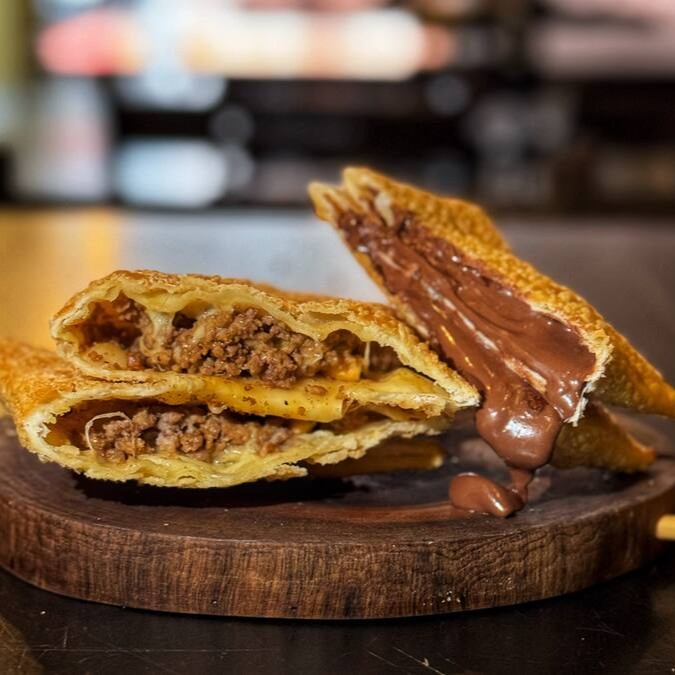Descubra a perfeita combinação de sabores com nosso Pastel Doce, recheado generosamente com uma barra de chocolate Hershey's de primeira qualidade e o inigualável Queijo Muçarela. Este pastel, da nossa categoria de 'Pasteis Doces', é uma verdadeira indulgência para os amantes de doces, prometendo uma experiência gastronômica irresistível e rica em texturas. Mergulhe nos irresistíveis sabores deste pastel, onde o chocolate cremoso e riquíssimo se une ao queijo derretido e suave para criar uma combinação celestial.