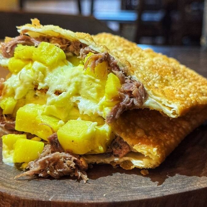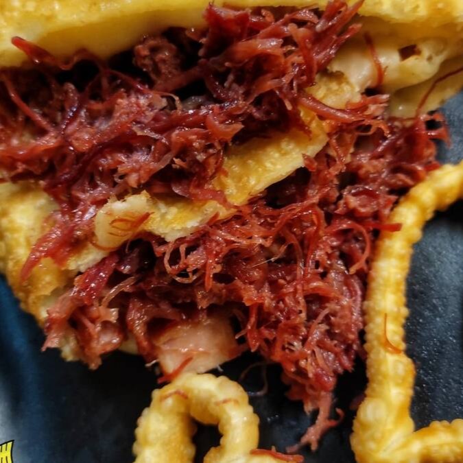 O Pastel Arretado, da nossa linha de Pastéis Gourmet Especiais, é uma deliciosa explosão de sabores. Recheado com uma carne seca desfiada e suculenta, harmoniza perfeitamente com o queijo derretido que se mistura ao bacon crocante. A pimenta defumada, de leve ardência, traz um toque de requinte e ousadia para o paladar. É o pastel ideal para quem procura uma experiência gastronômica única e prazerosa.