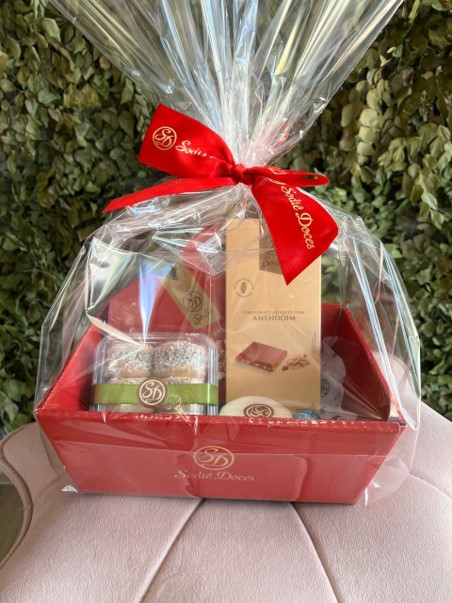 CESTA P VERMELHA C/ LAÇO VERMELHO PRESENTEAVEL SODIE