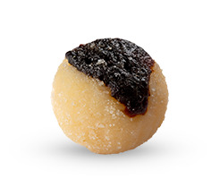 A trufa ao leite com recheio de cocada combina o irresistível chocolate ao leite com o doce caseiro mais amado do Brasil. A casquinha de chocolate ao leite é macia e envolvente, derretendo na boca e revelando um recheio generoso de cocada cremosa, feita com coco fresco ralado e leite condensado. A textura é levemente crocante, com pedacinhos de coco que contrastam perfeitamente com a suavidade do chocolate. Um equilíbrio perfeito entre o doce do chocolate e o coco, trazendo um sabor tropical.