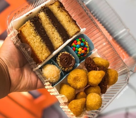 Combo Casal 2 Fatias De Bolo 0,100gr + 2 Cafes Com Elite + 12 Mini Salgadinhos + 4 Docinhos