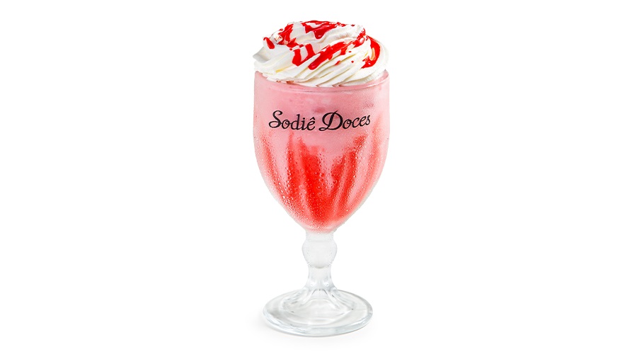 Bebida cremosa gelada a base de baunilha e calda de morango, decorada com calda top cream de morango e finalizada com chantily.Para pedidos via delivery, todas as bebidas serão enviadas em embalagens descartáveis com tampa.