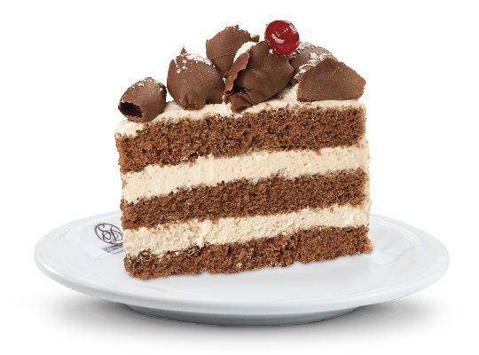 Bolo de massa de chocolate, recheio de mousse de Leite Ninho®, cobertura de mousse branca, raspas de chocolate ao leite, Leite Ninho® e cerejas decorativas.