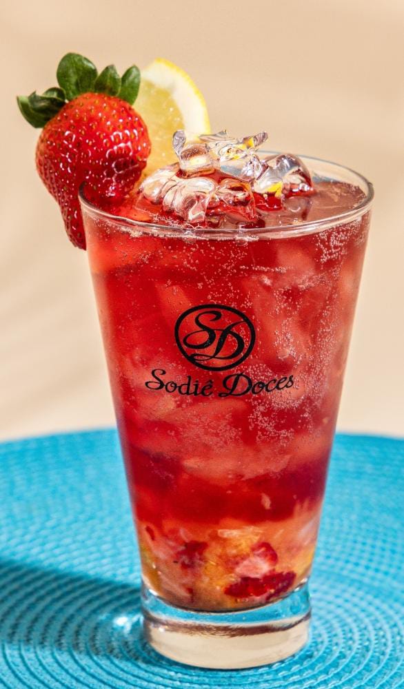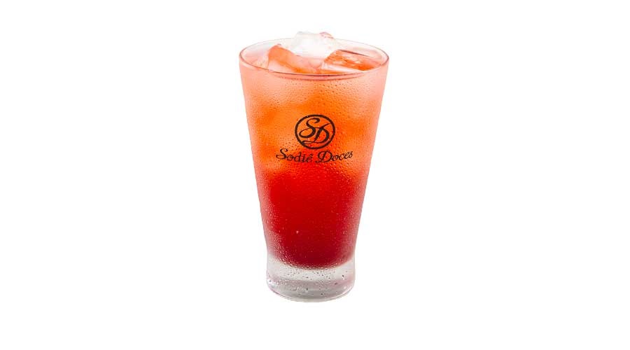Bebida gaseificada refrescante sabor frutas vermelhas com cubos de gelo.Para pedidos via delivery, todas as bebidas serão enviadas em embalagens descartáveis com tampa.