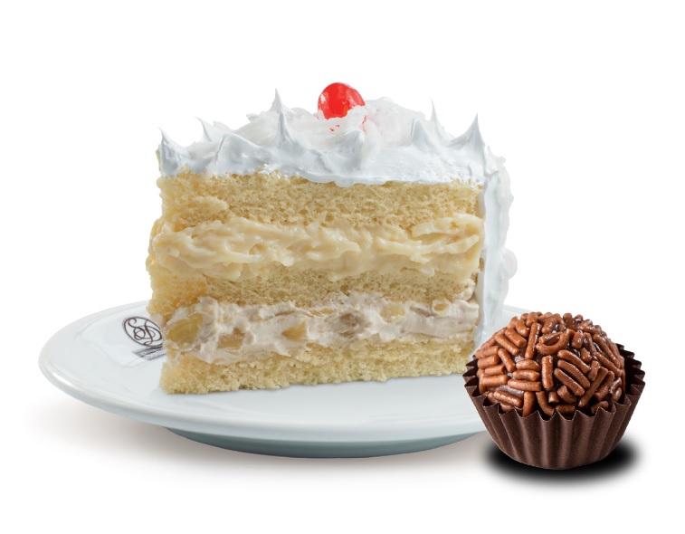 Na compra de 1 fatia de bolo Abacaxi com Coco 200gr você ganha 1 brigadeiro grátis.