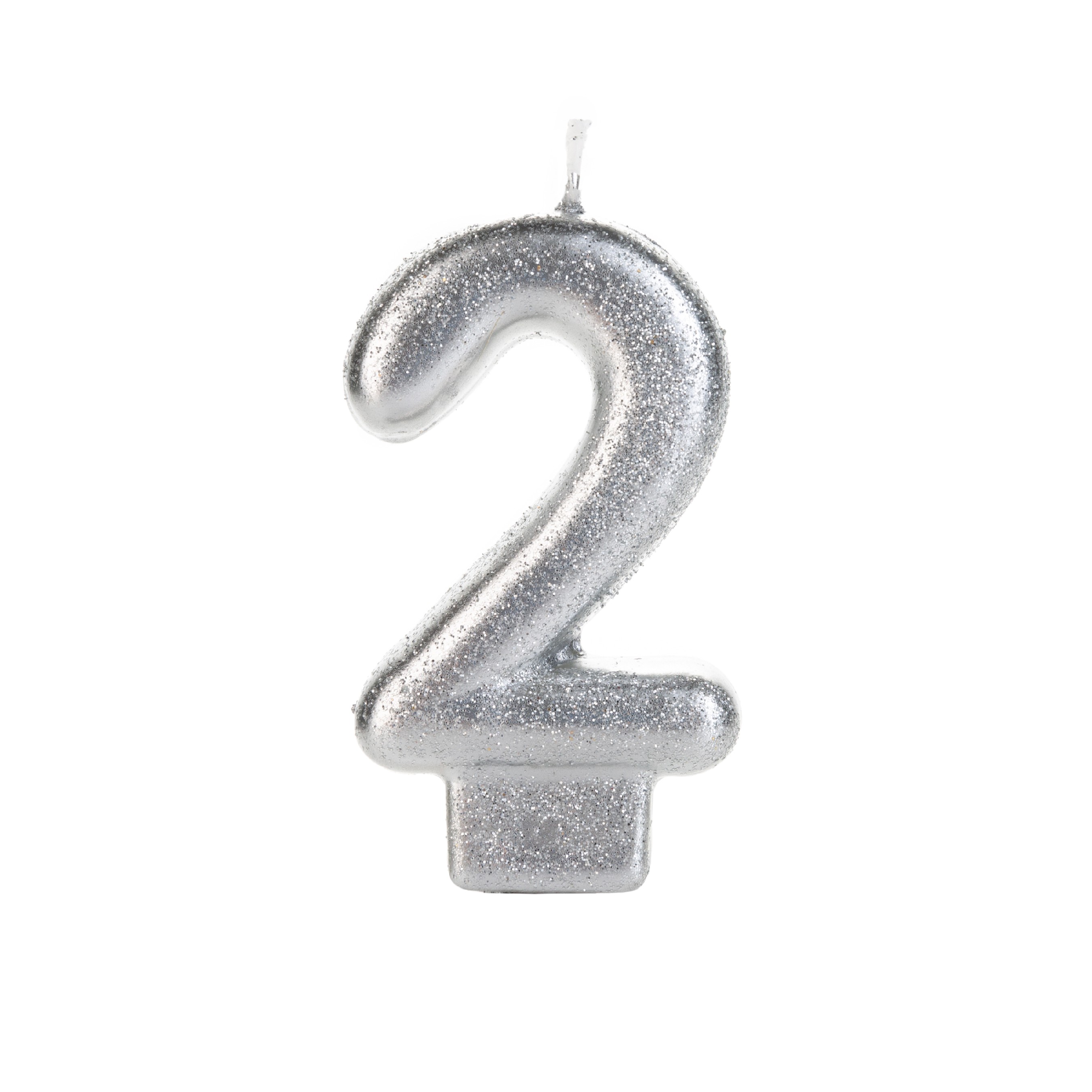 Vela Prateada Glitter Numero 2 Vnp02