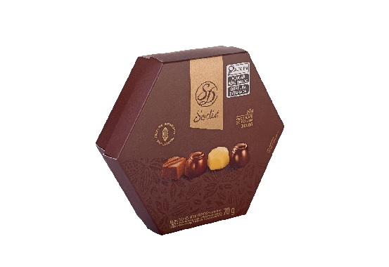 Possui 7 bombons tradicionais, chocolate ao leite, chocolate branco, chocolate amargo 54% e chocolate amargo 70%.
