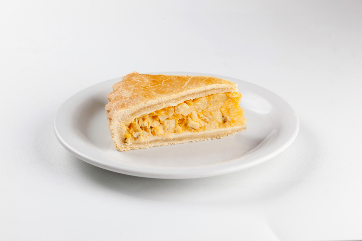 Fatia de torta com recheio divino de palmito é abraçado por uma camada de massa, proporcionando uma experiência gastronômica inesquecível.
