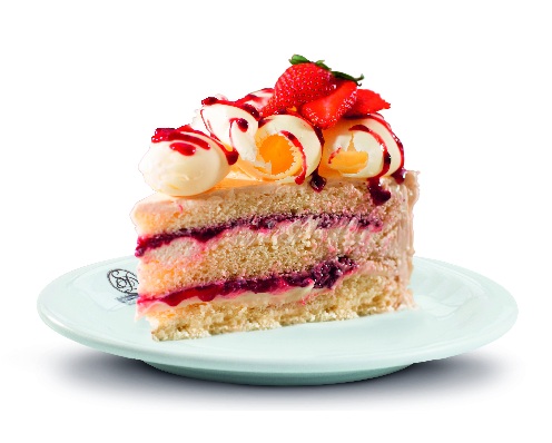 Bolo de massa branca integral, recheio de mousse branca zero adição de açúcares com morangos, cobertura de mousse branca zero adição de açúcares e morango.