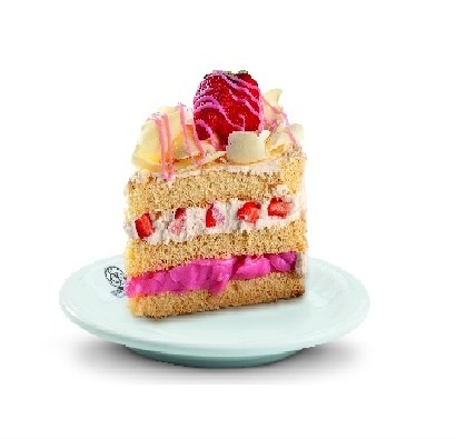 Bolo branco, recheio de mousse de leite em pó com morango e mousse de leite em pó, cobertura de mousse branco , raspas de chocolate branco, leite em pó e morango.