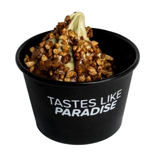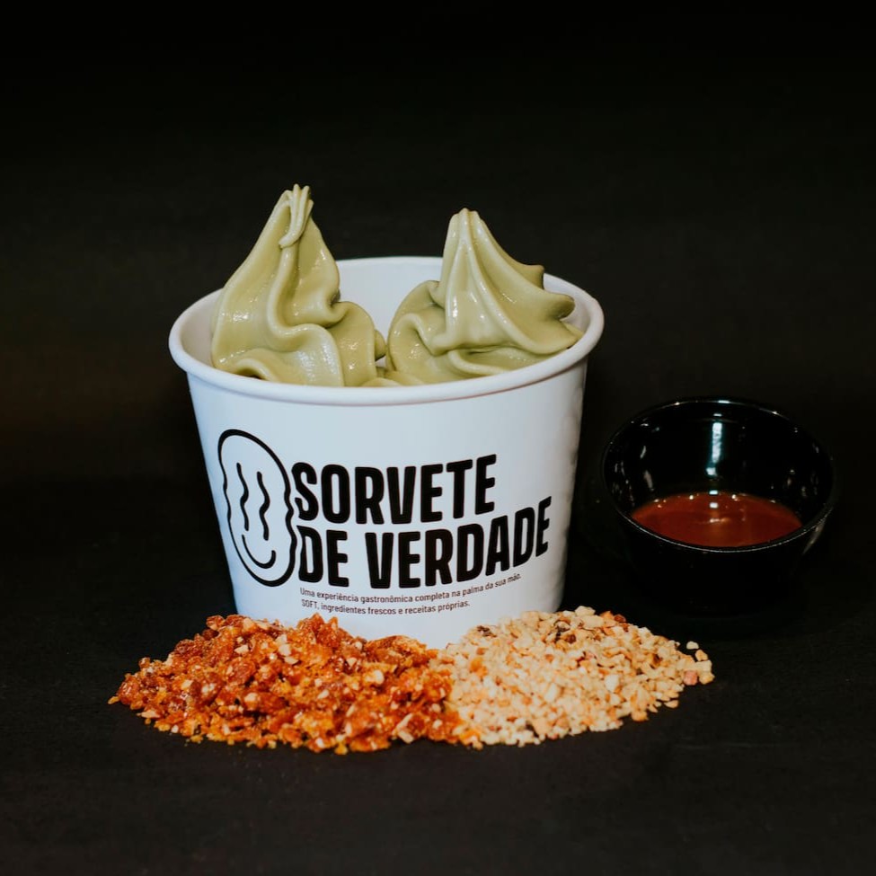 120g de sorvete de pistache, acompanhado de uma deliciosa calda de caramelo toffee, crocantes e farofa de castanha de caju. Uma combinação de texturas e sabores que vai conquistar seu paladar!