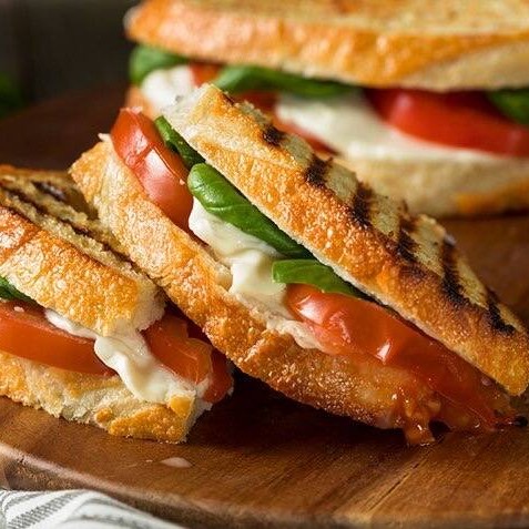 Pão de farinhas funcionais com queijo mozzarella prensado na chapa.