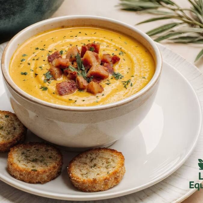 A deusa grega Afrodite resolveu lançar sua versão de sopa! Um creme batido com batata, abobora e cenoura, com queijo derretido e creme de leite! Uma combinação nutritiva, encorpada e irresistível.