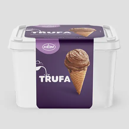 Sorvete sabor artificial de nata, mesclado com trufa. Colorido artificialmente. Aromatizado artificialmente.