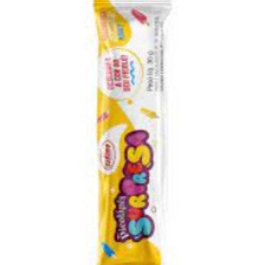 Picolé sabor maracujá, recheado com leite condensado. Contém aromatizante sintético idêntico ao natural. Colorido artificialmente.
