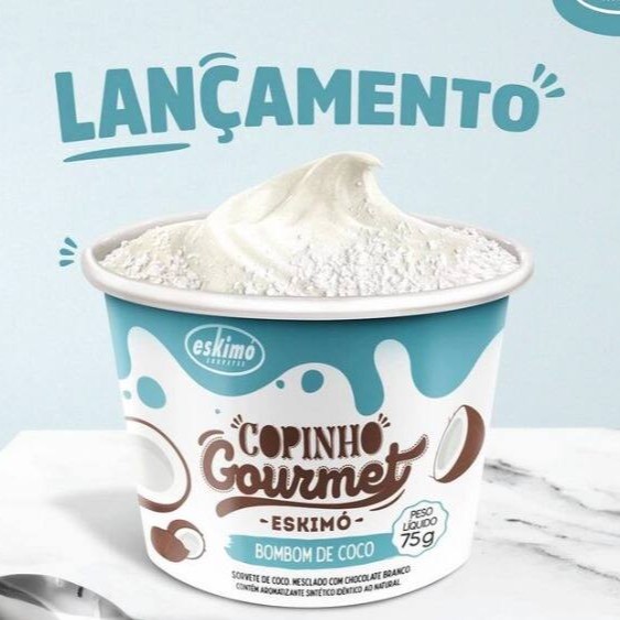 Picolé sabor de leite, com recheio de chocolate e cobertura de chocolate branco e amendoim. Contém aromatizante sintético idêntico ao natural. Colorido artificialmente.