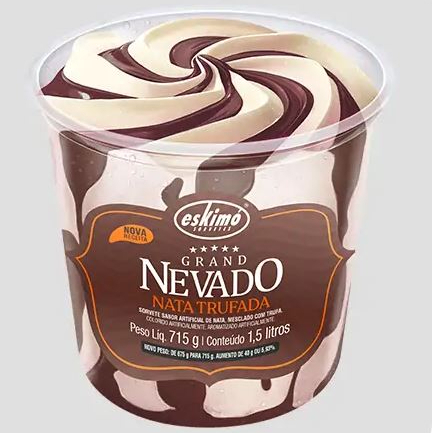 SORVETE SABOR ARTIFICIAL DE NATA, MESCLADO COM CHOCOLATE MEIO AMARGO. AROMATIZADO ARTIFICIALMENTE.