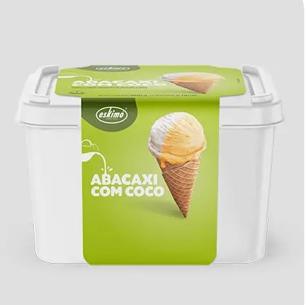 Sorvete sabor artificial de abacaxi e coco. Colorido artificialmente. Aromatizado artificialmente.