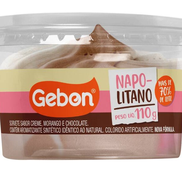Pote de 1,5 litros sorvete de Napolitano, não contém Glúten -Contém Lactose.
