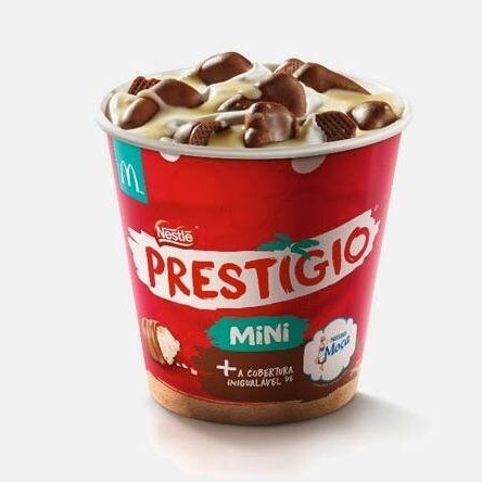Com um delicioso sorvete expresso e cobertura a sua escolha, + tubetes eo inconfundivel prestigio.