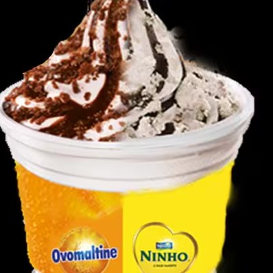 Com um delicioso sorvete expresso e cobertura a sua escolha, + tubetes eo Ninho+Ovomaltine.