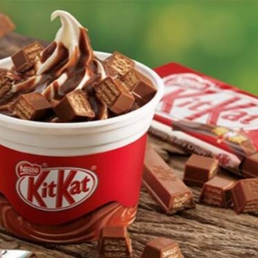 Com um delicioso sorvete expresso e cobertura a sua escolha, +tubetes eo kit-kat.