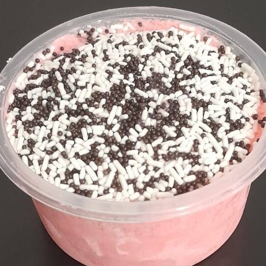 Sorvete Cremoso De Morango +chocolate Granul. Branco E Preto+ 1 Colher ( 200 Ml)