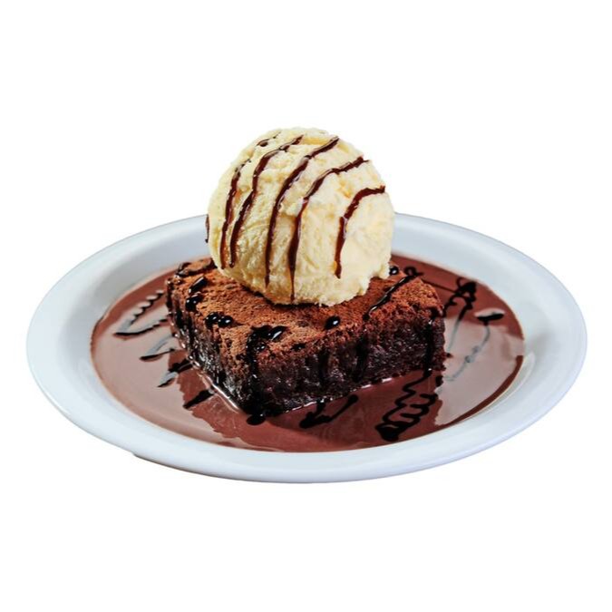 Desfrute de um delicioso e irresistível brownie, meticulosamente preparado para obter a textura perfeita, rica e fofa. Este prazer de chocolate é generosamente coberto com uma bola de sorvete de creme, cremoso e suave, proporcionando a combinação perfeita de quente e frio. Esta sobremesa divina, repleta de sabor e indulgência, é a maneira perfeita de completar sua refeição e satisfazer os seus desejos por doces.
