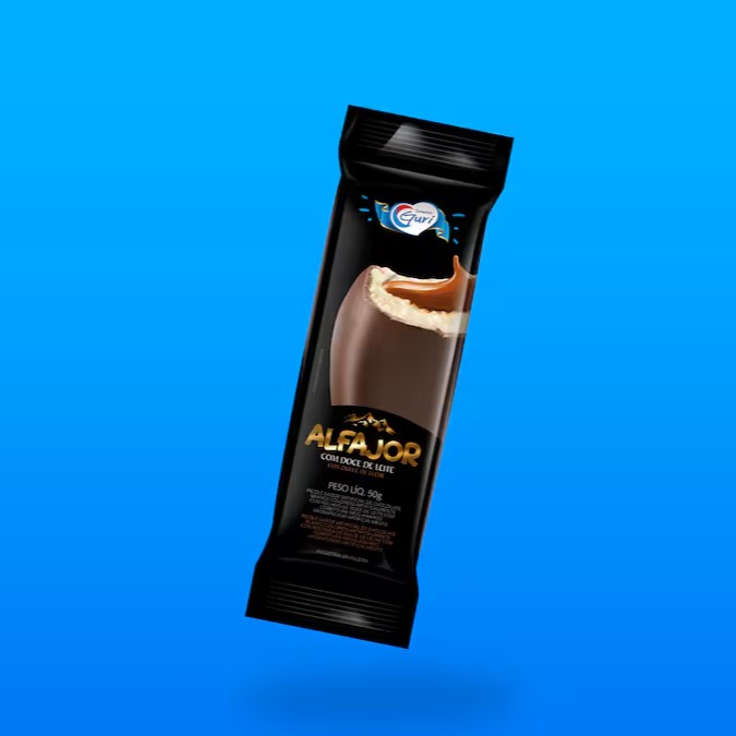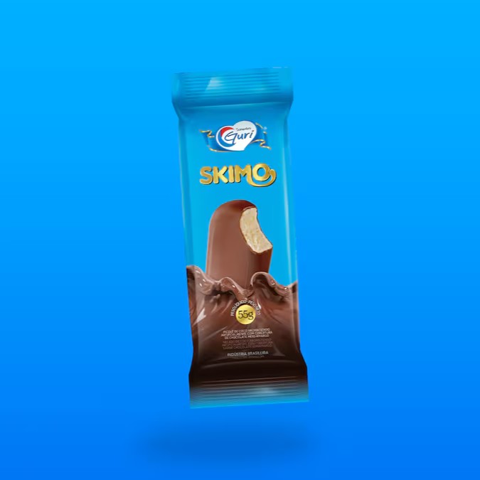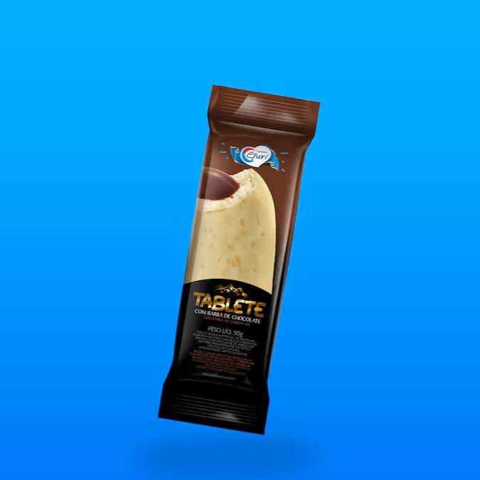 Picolé sabor artificial de chocolate branco com recheio de doce de leite e cobertura de chocolate meio amargo.