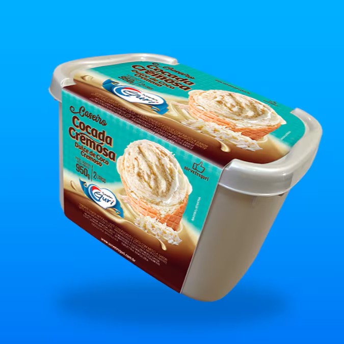 Pote de sorvete 2 litros sabor Coco Trufado Com Chocolate Branco e coco.
