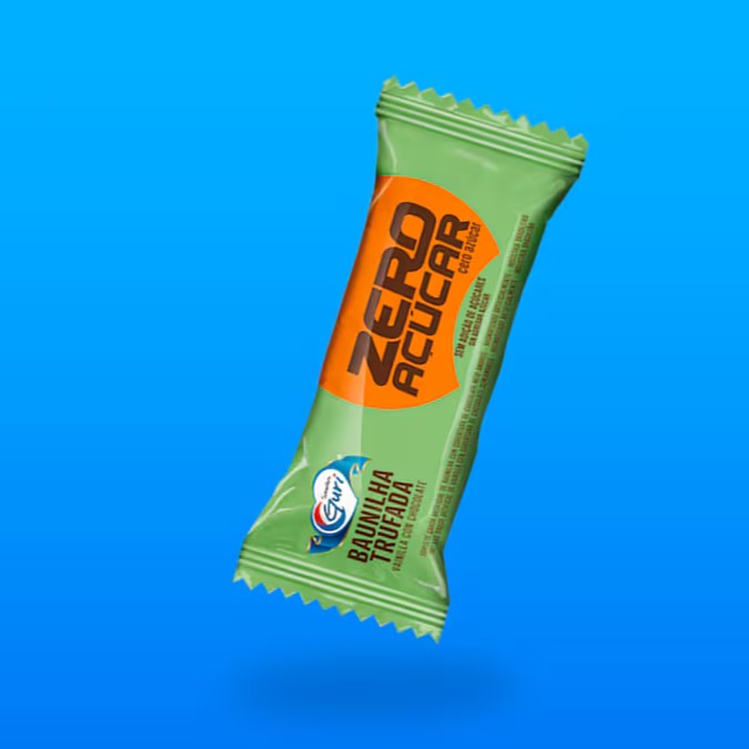 Sorvete de baunilha mesclado com chocolate meio amargo sem adição de açucares.
