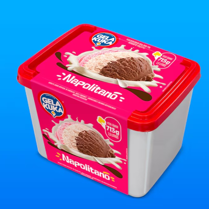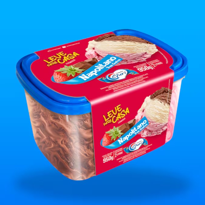 Apresentamos o nosso glorioso 'Napolitano 2 Litros' da categoria 'Guri Sorvetes 2 Litros'. Esta seleção especial faz parte da nossa linha 'Leve para Casa'. Trata-se de um suntuoso sorvete tricolor, que combina os sabores sedutores do rico chocolate, do voluptuoso morango e do suave creme. Cada lata contém uma generosa porção de 2 litros, perfeita para compartilhar em ocasiões especiais ou para desfrutar sozinho. Uma verdadeira festa de sabor em cada colherada!