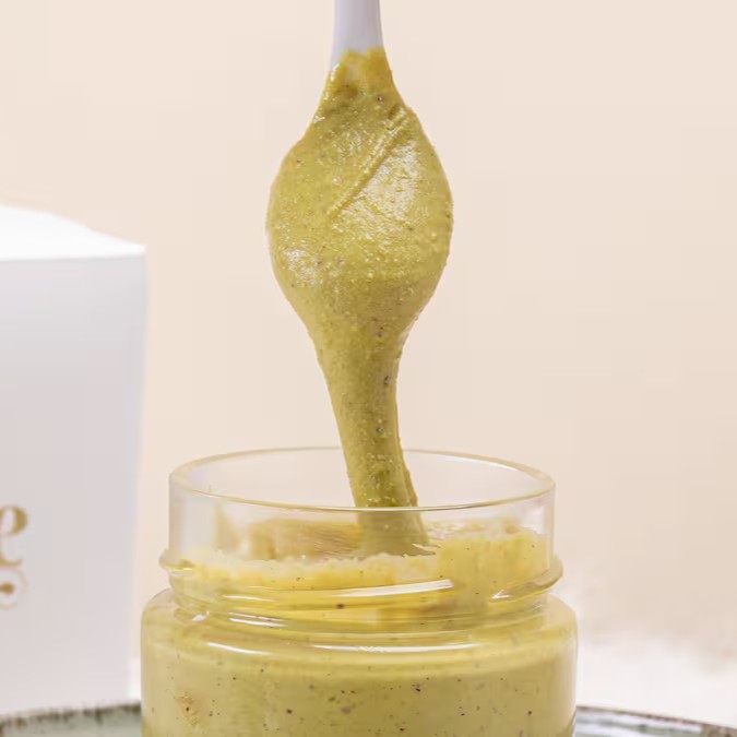 Pasta Artesanal de Pistache (aprox. 200g) Embalagem: Potinho de vidro *Caso deseje sacola para presente favor adicionar nos complementos.