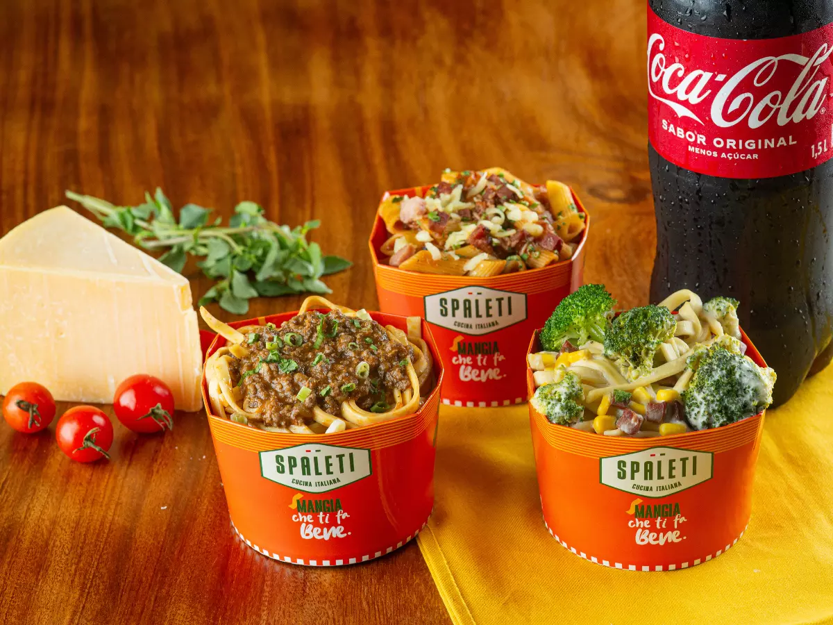 Almoço ou jantar completo! Escolha seu Spaleti preferido, leve uma Coca-Cola lata e um Brigadeiro. Aproveite essa oferta!