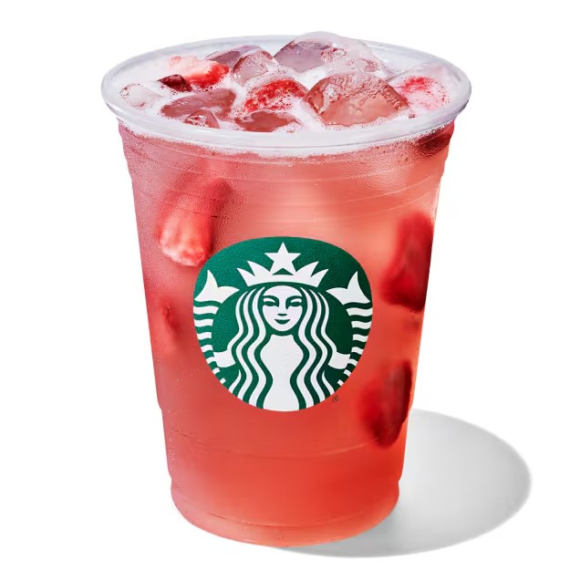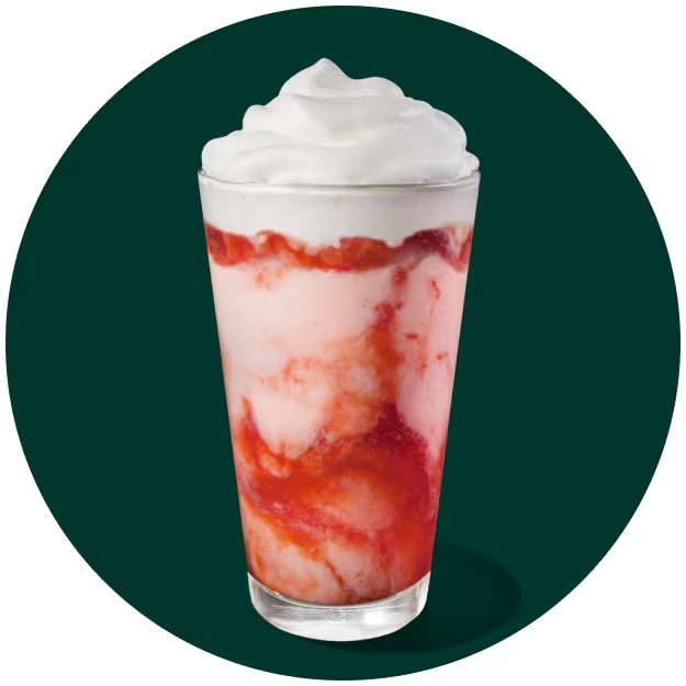 Combina limonada com o xarope de morango, base cremosa do Frappuccino® e as frutas liofilizadas de Morango com gelo batido.