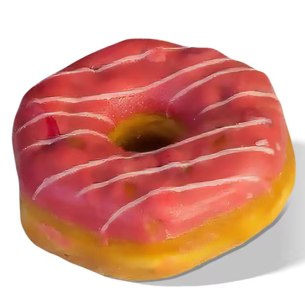 Donut com recheio de frutas vermelhas e cobertura sabor chocolate branco colorido rosa